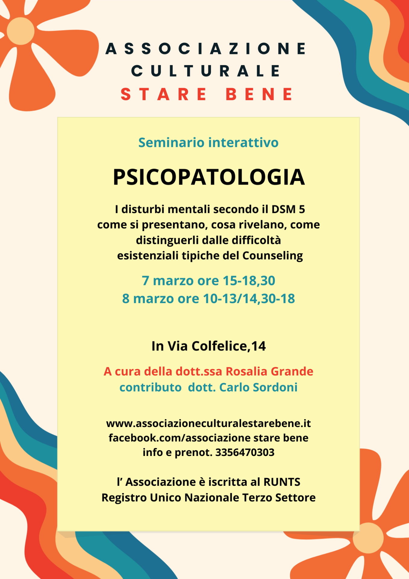 ASSOCIAZIONE CULTURALE STARE BENE aps iscritta al Registro Unico Nazionale Terzo Settore